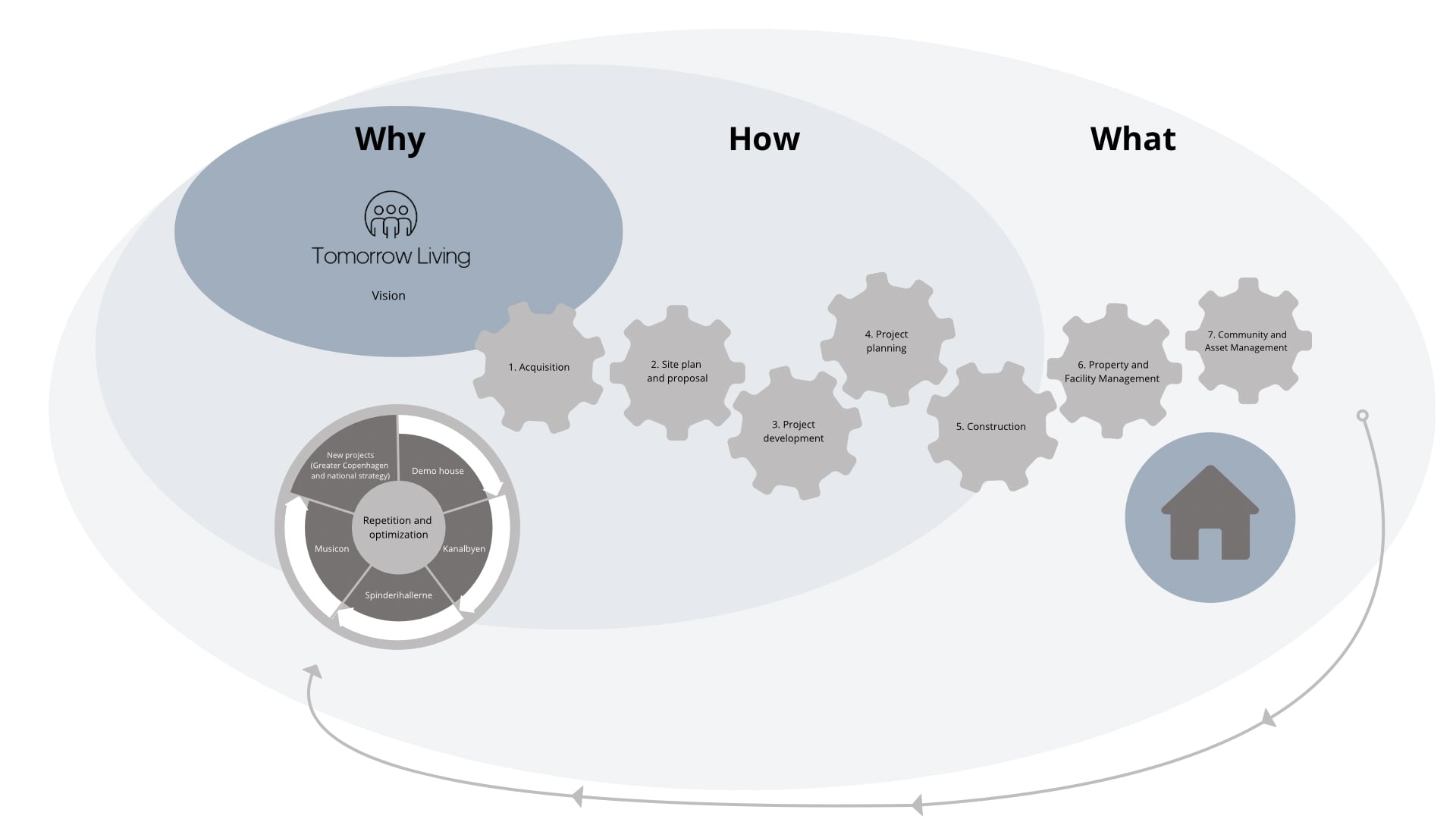 Grounded in our digital process model, we manage all functions internally within the organization, creating a clear connection from idea, development, and construction to operation and community. Likewise, the model ensures a high degree of optimization through knowledge accumulation, repetition, standardization, and digitization - both in terms of construction and operation.